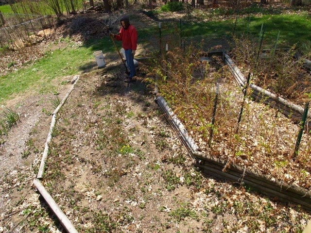 Knowing my tendency to micromanage, I took myself out of Timothy's way by pruning the 3 raspberry beds on the same terrace. It needed to be done, I could still help T if needed and I was not nagging him about missing a plant that I can spot at a glance from 20 feet while he steps on it. I believe that the arrangement worked out well for both of us.